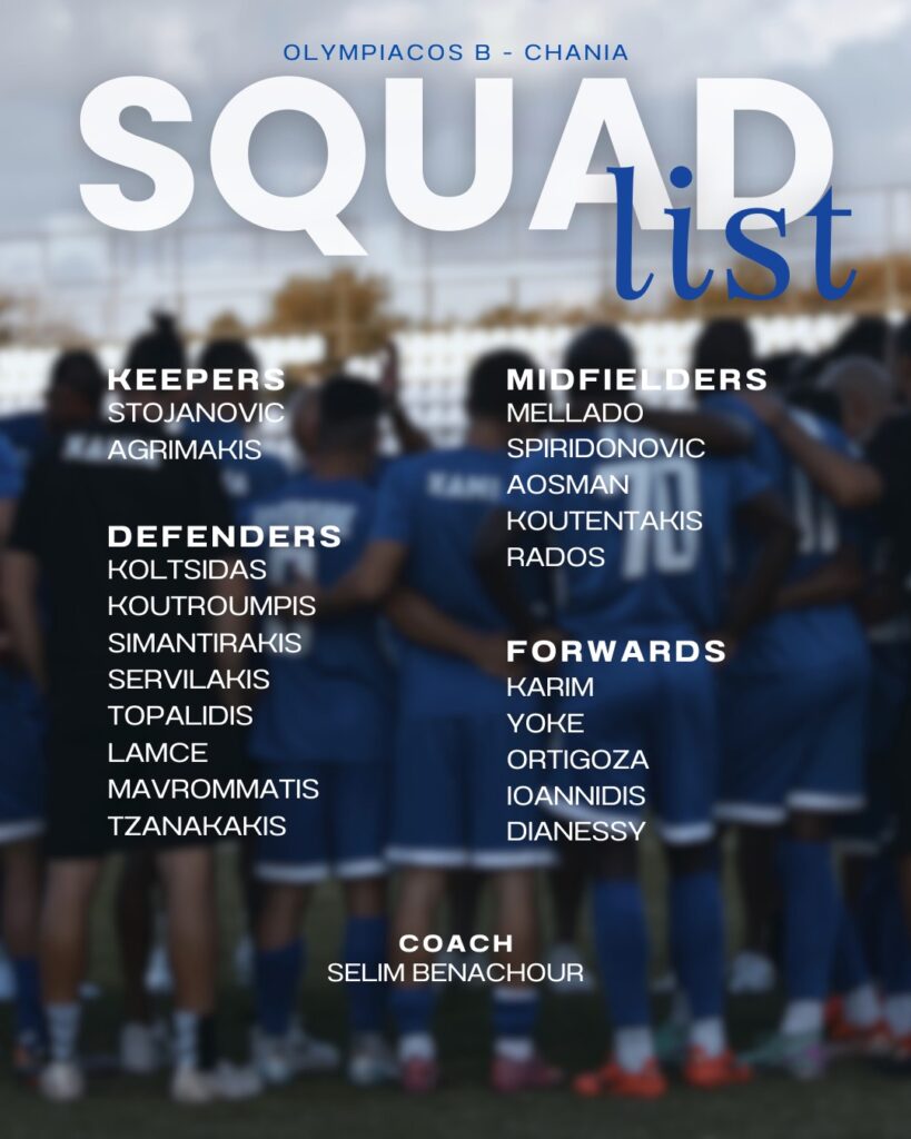 Εκτός αποστολής έμειναν οι Οικονομάκης, Νεκούλ και Τζανακάκης, που είναι τραυματίες, όπως επίσης και οι Ισάλα, Καρίμ, Φανουράκης, Πανεράς, Νασέρ και Νίλι.