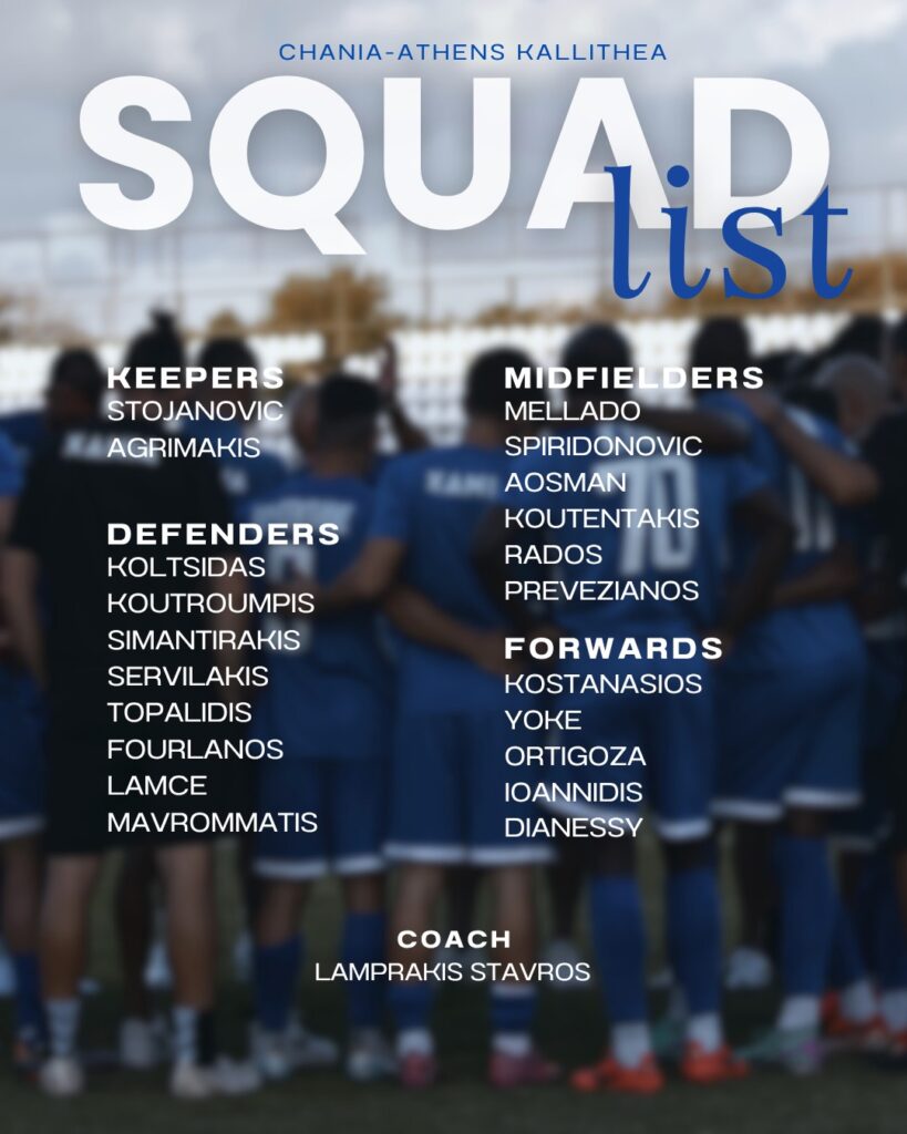 Μετά το τέλος της προπόνησης που πραγματοποιήθηκε υπό τις οδηγίες του Σταύρου Λαμπράκη, έγινε γνωστή η αποστολή της ομάδας μας για το αυριανό παιχνίδι.
