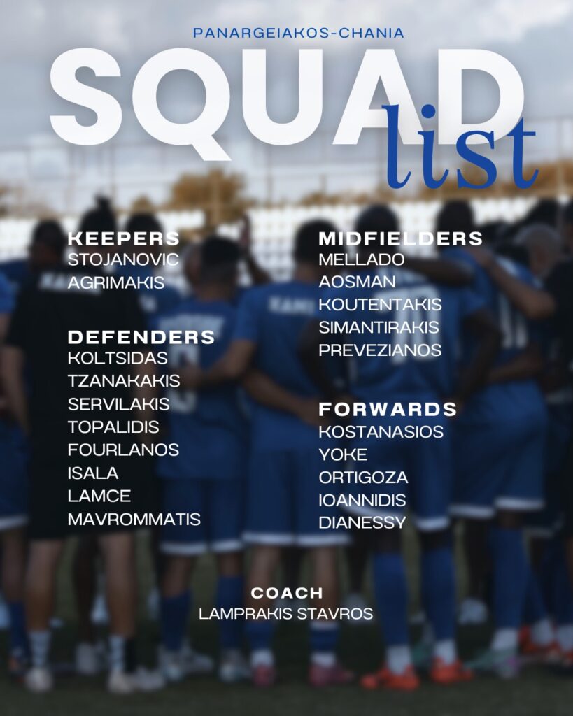 Η αποστολή της ομάδας που τα ταξίδεψε στην Αργολίδα αποτελείται από τους εξής ποδοσφαιριστές: Στογιάνοβιτς, Αγριμάκης, Μαυρομάτης, Λάμτσε, Φουρλάνος, Τζανακάκης, Τοπαλίδης, Σημαντηράκης, Ισάλα, Σερβιλάκης, Μεγιάδο, Κουτεντάκης, Κολτσίδας, Πρεβεζιάνος, Αοσμαν, Κωστανάσιος, Ορτιγκόθα, Γιοκέ, Ντιανεσί, Ιωαννίδης.